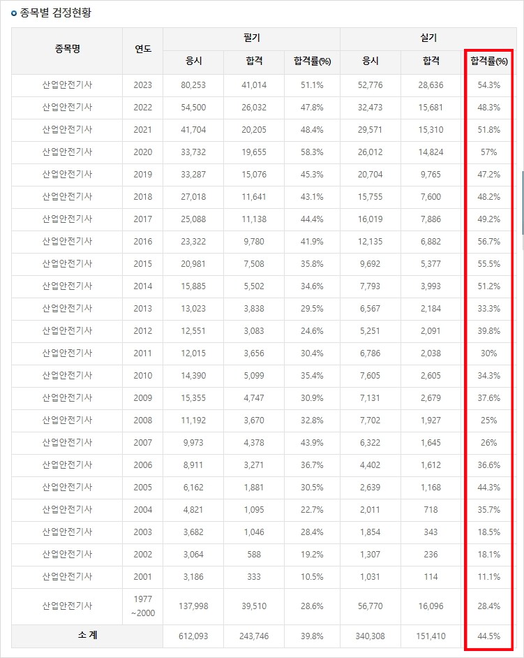 산업안전기사 합격률